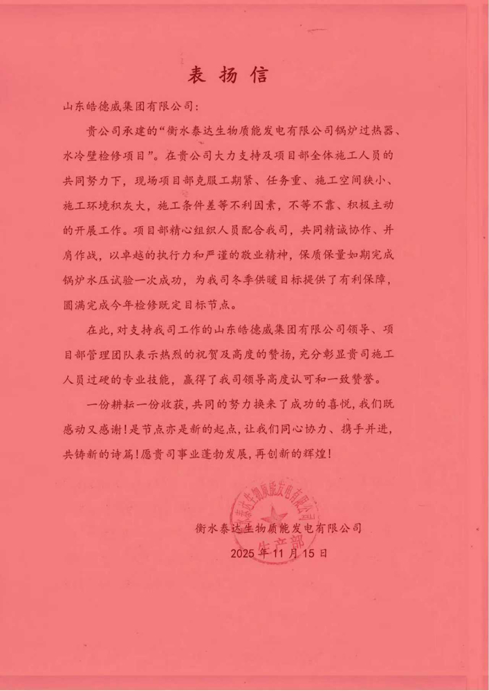 | 恭喜公司项目部获得业… |